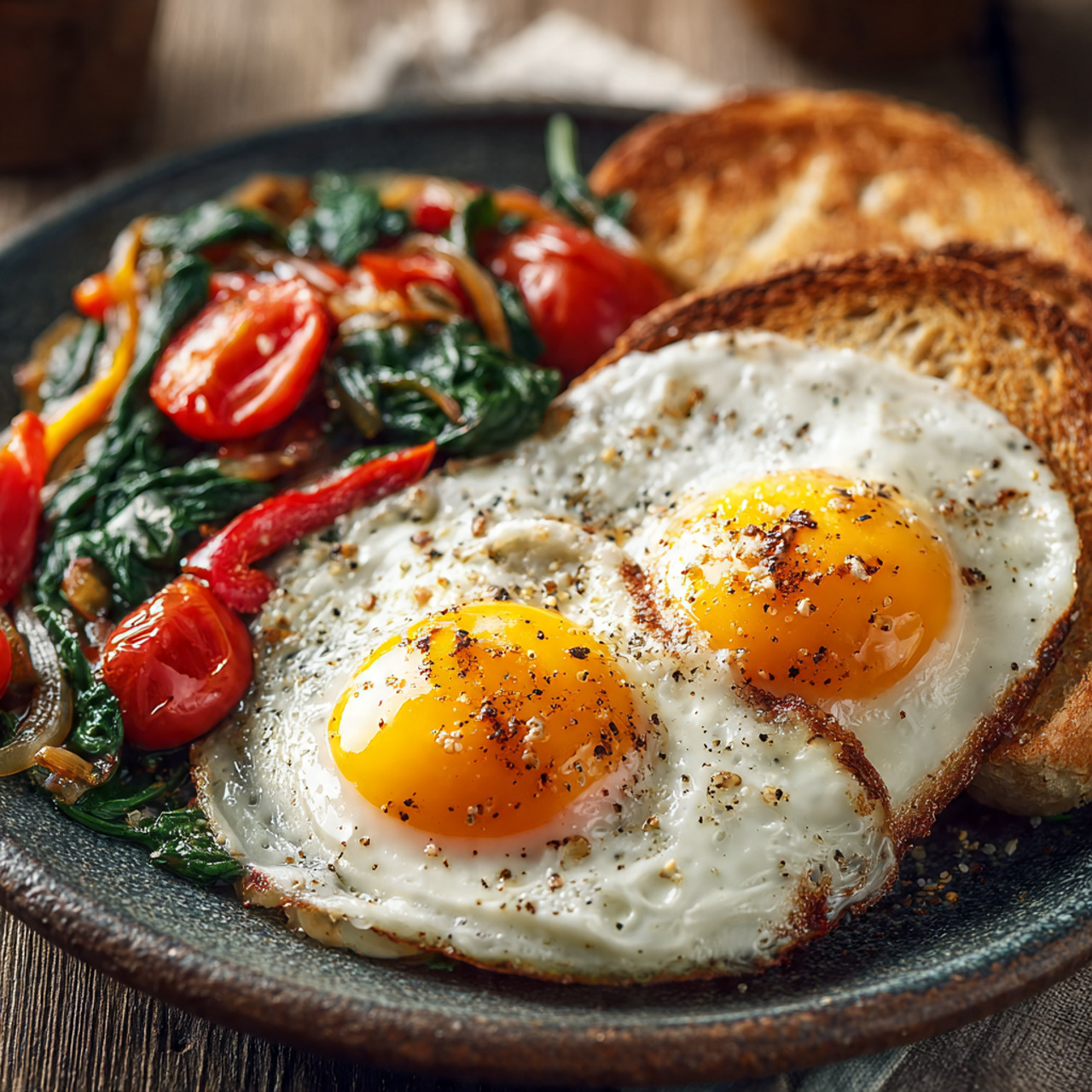 5. Pan-Fried Eggs with Toast and Sautéed Veggies