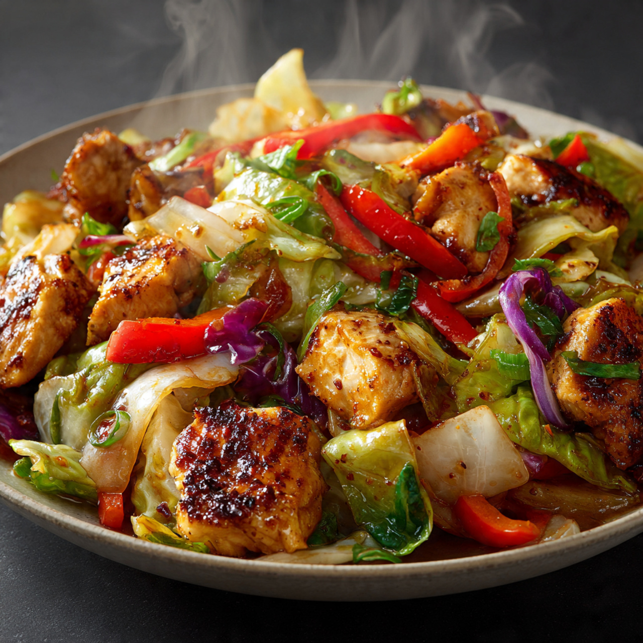 Chicken can be cooked in small portions, and vegetables like cabbage or carrots last long in the fridge. This meal feels fresh, healthy, and can be eaten alone or with rice.